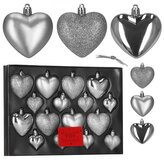 Srdíčka stříbrná sada 16ks, vánoční ozdoby