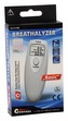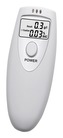 Cyfrowy alkomat do badania oddechu z uchwytem na nadgarstek Urządzenie do orientacyjnego określania zawartości alkoholu we krwi za pomocą badania oddechu, o szybkiej reakcji i powtarzalności pomiarów. Za pomocą półprzewodnikowego czujnika można określić zawartość alkoholu we krwi w zakresie pomiarowym 0 - 1,9‰. Wyposażenie urządzenia zostało rozszerzone o sygnał dźwiękowy i cyfrowy wyświetlacz, na którym czytelnie wyświetlane są zmierzone wartości. Zasilanie zapewnione jest za pomocą 2x baterii AAA (nie są dołączone). Tester wyłącza się automatycznie po dłuższym okresie bezczynności.