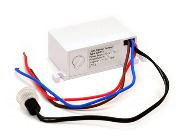 230V/10A, załącza przy oświetleniu poniżej 5-50 LUX - płynnie regulowane, element wykonawczy=przekaźnik
