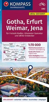 KOMPASS Fahrradkarte Gotha, Erfurt, Weimar, Jena 1:70 000