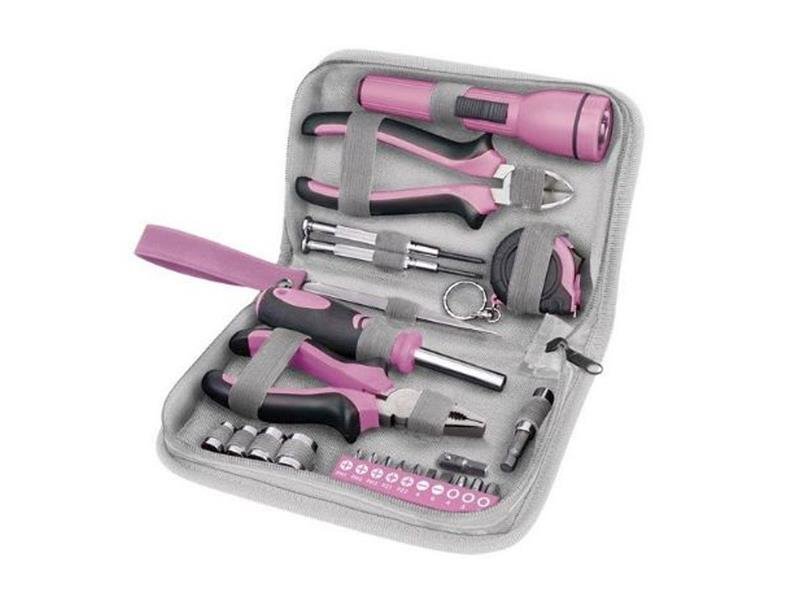 Sada nářadí EXTOL CRAFT 6595 23ks Extol Sada nářadí 23 ks, růžová barva Obsah balení: - baterka - kleště: kombinované 160mm / štípací 160mm - metr 1,5 m - hodinářské šroubováky - pinzeta - šroubovák na hroty - držák hrotů 50 mm - adaptér na 1/4 klíče - bity: PH1 / 2 / 3,... przeczytaj całość