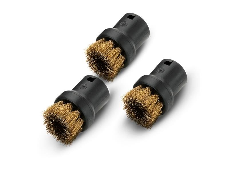 Sada kartáčů KÄRCHER 2.863-061.0 Sada kulatých kartáčů s pevnými mosaznými štětinami pro bezproblémové odstranění ulpívajících nečistot a usazenin - například na roštu kamen nebo varné desce. Pevné kovové štětiny dělají z kartáče skutečného siláka mezi kartáči pro parní...