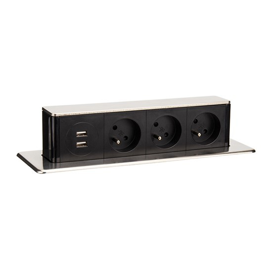 Zásuvkový blok SOLIGHT PP126 Vestavné zásuvky pro pracovní desky a stolyVýsuvný blok, elegantně schovaný, vysune se pouze v případě potřeby a nezabírá zbytečně místoZásuvky vedle sebe, vrchní kryt z broušeného hliníku3× 230V/10A2× USB, 2400mA max.Barva: stříbrná,...