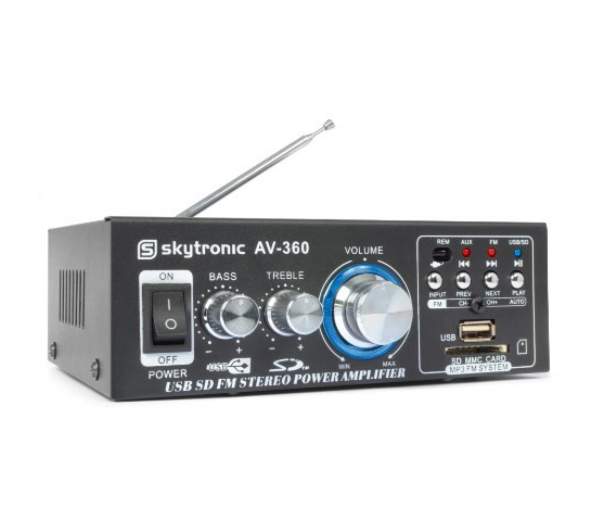 2x 40W přenosný Hifi stereo audio zesilovač s MP3 přehrávačem (USB/SD) a integrovaným FM rádiem (87,5 - 108,5 MHz)