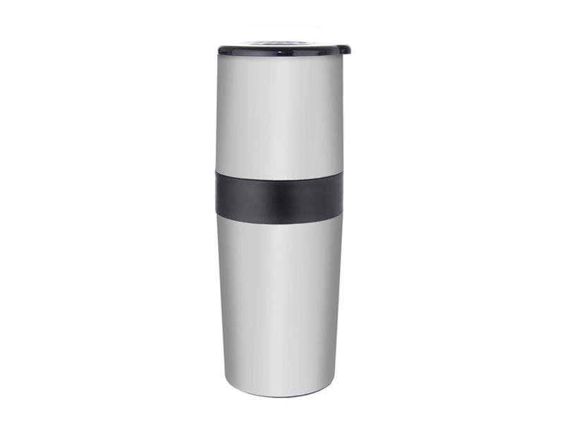 Multifunkční mechanický mlýnek namele kávu do zásobníku, který je zároveň termohrnkem. Namletou kávu stačí zalít horkou vodou – buď do sítka pro kávu bez lógru a nebo přímo v hrnku pro klasickou "tureckou" kávu. Při použití víčka se silikonovým těsněním vydrží nápoj déle teplý. Má keramický mlecí...
