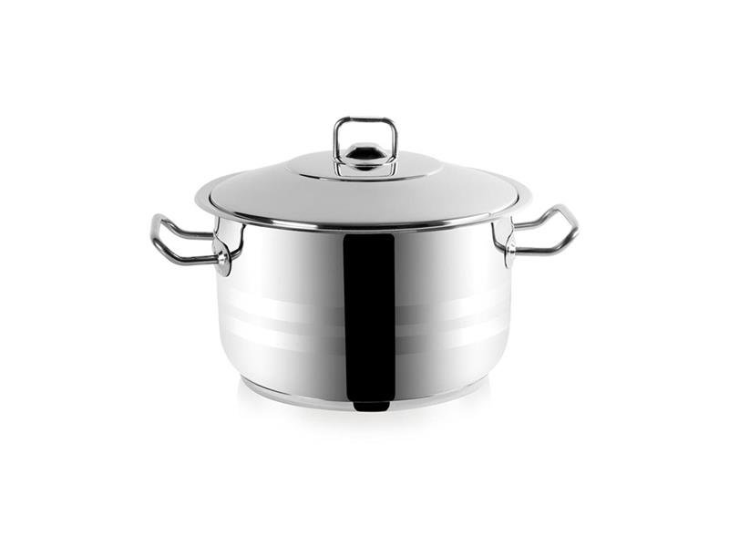 Velký hrnec z kvalitní nerezové oceli 18/10 s termoakumulačním dnem zajistí úsporné, ekonomické a efektivní...