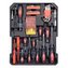 Sada obsahuje celou řadu kleští, šroubováků, gola klíčů, kladivo, vodováhu, stranové i imbus klíče, bity, základní spojovací materiál a celou řadu dalšího nářadí, které je vhodné pro použití jak doma, v garáži, tak i na cestách.