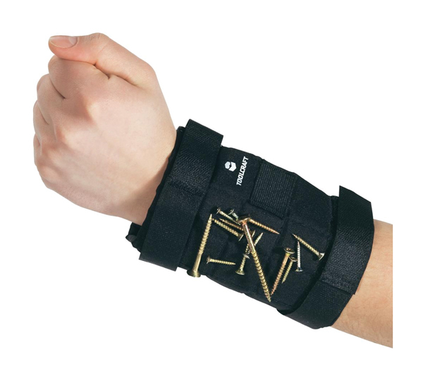 Pohodlný magnetický náramek přidržuje všechny drobné kovové díly (např. hřebíky nebo šrouby) na vašem zápěstí. Ideální při pracích ve výškách nebo na tmavých místech. Už nemusíte držet hřebíky nebo šrouby zuby nebo rty, abyste měli volné obě ruce. Náramek na suchým zip. Materiál: Nylon. Černá barva.