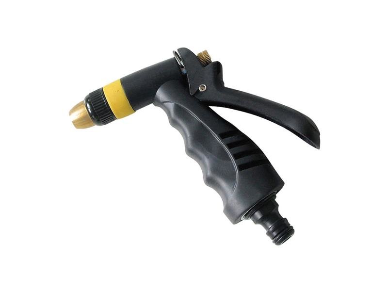Mosiężna dysza z możliwością regulacji strumienia od delikatnej mgiełki aż po pełny strumień Ergonomiczna rączka z blokadą