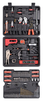 Sada obsahuje celou řadu vrtáků, bitů, nástrčných klíčů, šroubováky, kleště, kladivo, vodováhu, stranové klíče, základní spojovací materiál a celou řadu dalšího nářadí, které je vhodné pro použití jak doma, v garáži, tak i na cestách.