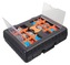 Vše uspořádáno v přehledných pozicích, uvnitř navíc jedno plato s nástroji. Spojovací materiál je umístěn ve víku kufru.