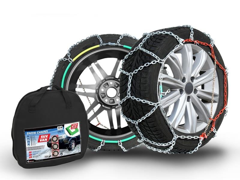 Sněhové řetězy vyvinuté přímo pro vozy SUV, s velmi snadnou a rychlou montáží i demontáží. Lze použít i pro dodávky a obytná vozidla. Čtyřhranné články 27 x 16 mm jsou uzpůsobeny proti protáčení řetězu, čímž výrazně zvyšují záběr kola. Síla materiálu 4,5 mm zajišťuje vysokou pevnost, odolnost a dlouhou životnost. Řetězová síť je uspořádána ve speciálním tvaru „X“, zaručujícím klidnou a pohodlnou jízdu na zasněžených silnicích i na polních cestách. Uvnitř balení je navíc dárek zdarma, v podobě třístranné škrabky na vodu, led a sníh.
