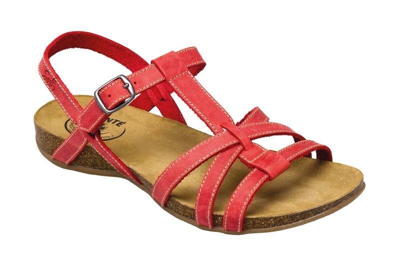 Zdravotní obuv - dámské sandále,barva: červená,podešev: hnědá,stélka: anatomicky tvarovaná, kožená,materiál: kůže,přezka pro upravení velikosti. przeczytaj całość