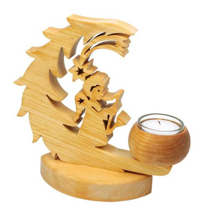 Small Foot Dřevěné vánoční ozdoby stojan na svíčky půlměsíc a anděl