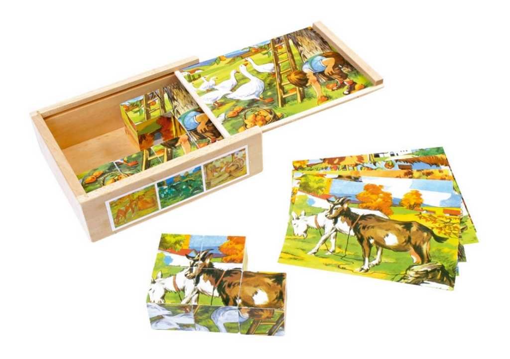 12 dřevěných kostek ukazuje 6 scén pokojného života na farmě! Pěkná zábava pro všechny milovníky puzzlí.Německá firma Legler zaměřená na výrobu kvalitních dřevěných hraček od roku 1996. Všechny dřevěné hračky značky small foot mají označení CE a jsou vyráběny dle evropské normy pro bezpečnost...