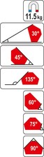 Umožňuje přesné spojování materiálů v úhlech 30°, 45°, 60°, 75°, 90° a 135°. Nosnost magnetu cca 11,5 kg. Povrchová úprava červené práškové lakování.