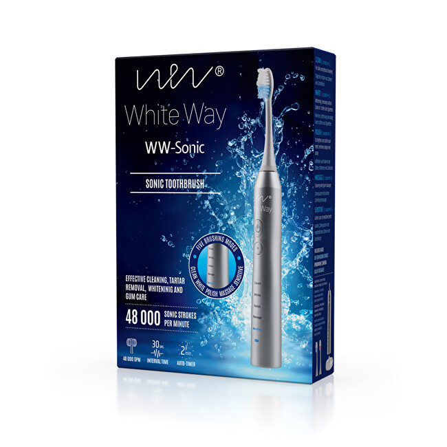 Kartáček Biotter WhiteWay Sonic díky sonické technologii zajistí optimální čištění povrchu zubů a mezizubních prostor, které jsou nedostupné pro tradiční kartáčky. Generátor zvukových vln vytváří od 31 000 do 48 000 sonických vibrací za minutu.