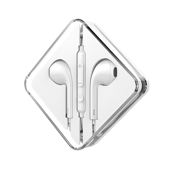 Kvalitní kabelová sluchátka s kabelem 1,2 m. Vstup 3,5 mm mini jack umožňuje jejich kompatibilitu s většinou zařízení dostupných na trhu. Sluchátka jsou vybavena mikrofonem umožňujícím telefonní hovory. Funkční operace jedním tlačítkem vám umožní přehrávat hudbu a přijímat telefonní hovory, dvojitým kliknutím přejdete na další skladbu a vrátíte se k předchozím třikrát.