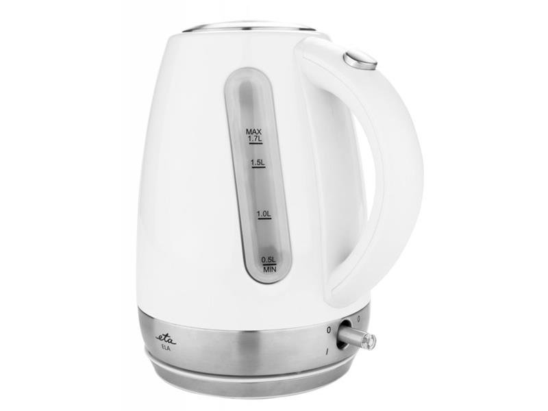 Rychlovarná konvice ETA Ela 8598 90030 v bílém nerezovém provedení zaujme snadno čistitelným povrchem. Je snímatelná z podstavce, na kterém je otočná o 360 °. Vládne vysokým příkonem 2100 W, pro rychlé přivedení k varu až 1,7 l vody. Při plnění konvice oceníte přehledný ukazatel stavu vody, ve výlevce je umístěn omyvatelný filtr zabraňující vápenatým usazeninám. Topná spirála je ukryta pod nerezovým dnem. Součástí podstavce je i odolný kontaktní systém zaručující vysokou bezpečnost provozu. Nepostrádá bezpečnostní výklopné víko, ani ochranu proti chodu naprázdno či přehřátí. Samozřejmostí je i prostor pro navinutí přívodního kabelu v podstavci. ETA na tento produkt nabízí prodlouženou záruku 3 roky na konektor.