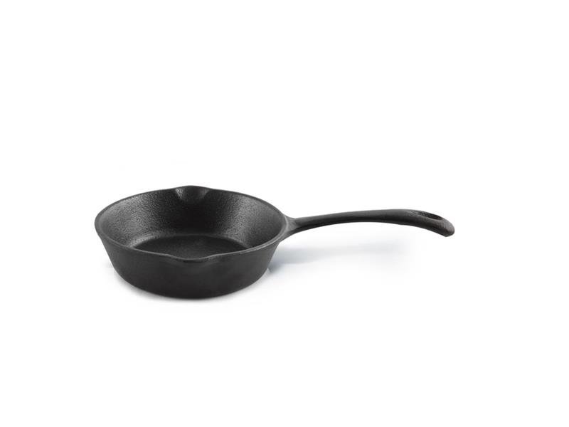 Żeliwna patelnia pomoże Ci w przygotowaniu smacznych potraw z mięsa, warzyw i ziemniaków. Patelnię z gotowym daniem możesz postawić na dowolnej desce i od razu na niej serwować posiłek. Dzięki temu urozmaicisz codzienne stołowanie i podawanie dań. Materiał: żeliwo. Zalecamy stosowanie kuchennej rękawicy. Można przygotowywać potrawy w piekarniku, na kuchence oraz nad bezpośrednim ogniem. Żeliwo wymaga specyficznej konserwacji - przed i po użyciu KONIECZNIE należy powierzchnię patelni zabezpieczyć jadalnym olejem, aby zapobiec powstawaniu rdzy. Nie przechowywać w wilgoci! Wymiary: śr. 16 cm, wys. 4 cm. Nadaje się do indukcji, jednak zalecamy sprawdzić możliwości Twojej płyty indukcyjnej, czy uruchomi się przy średnicy dna 12 cm. Nie używać kwasów organicznych typu ocet.