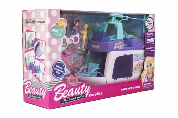 Loď pro panenky s panenkami 2ks plast 33cm s helikoptérou s doplňky v krabici 49x29x14cm