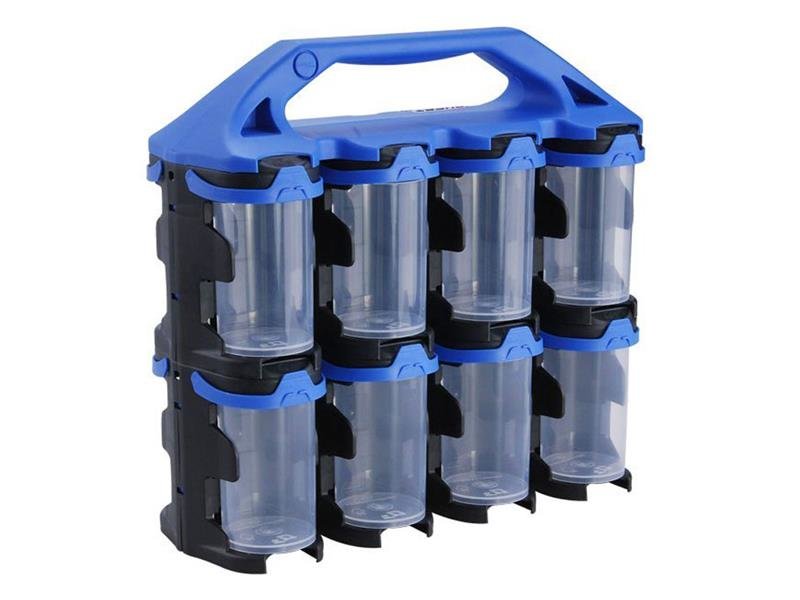 Přenosný organizér pro samostatné použítí nebo jako doplněk k závěsným organizérům. Jednotlivé nádoby lze z přenosného organizéru snadno vyndat a vložit do závěsného organizéru. Vyrobeno z PP plastu odolného vůči mechanickému poškození, olejům a rozpouštědlům, popis obsahu organizéru pomocí nalepovacího štítku.