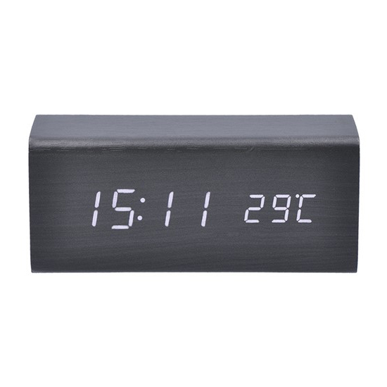 Innowacyjna funkcja wybudzania dźwiękiem, na przykład klaśnięciem, wyprowadzi Cię z trybu uśpienia bez konieczności szukania przycisków. Wbudowana bateria zachowuje ustawienia nawet przy braku zasilania, więc nie musisz obawiać się utraty czasu. Zegar ma eleganckie wykończenie w dekorze czarnego drewna, które doda Twojej przestrzeni przytulnego i wyszukanego wyglądu.