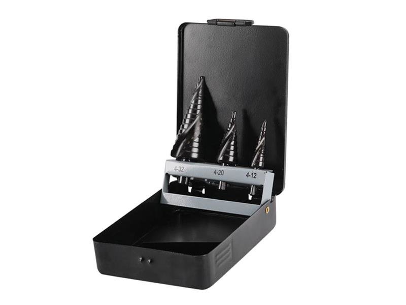 Sada vrtáků EXTOL CRAFT 20092 stupňovité 3ks Stupňovité vrtáky se používají pro vrtání kruhových otvorů v slitinových i neslitinových ocelových plátech, trubkách a profilech do tloušťky stěny 4mm, k navrtávání a odhrotování v jedné pracovní operaci. Lze je použít také pro...