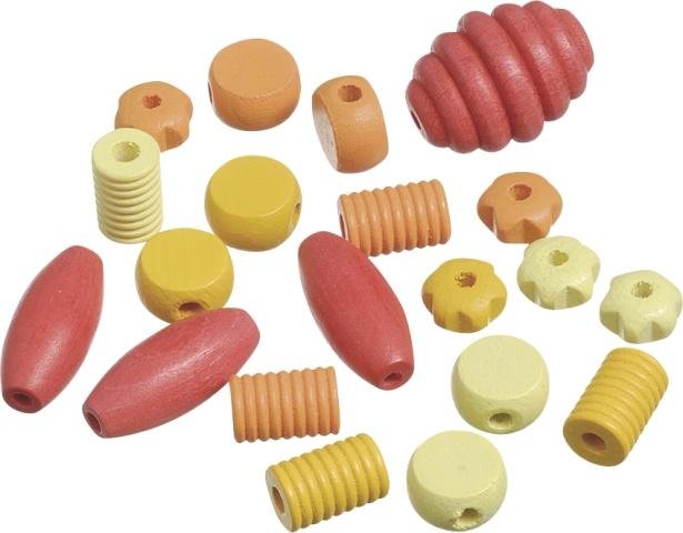 Dřevěné korálky mix různé tvary - žlutá, oranžová, červená 20 ks