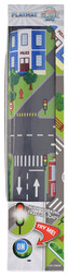 Dywanik wykonany jest z przyjemnego materiału tekstylnego o wymiarach 120 x 72 cm, co daje wystarczającą powierzchnię do zabawy. Zasilanie na baterie pozwala włączyć świecące światła sygnalizacji, co uprzyjemnia rozgrywkę. Produkt jest zapakowany w praktyczne pudełko i jest odpowiedni dla dzieci od 3 lat.