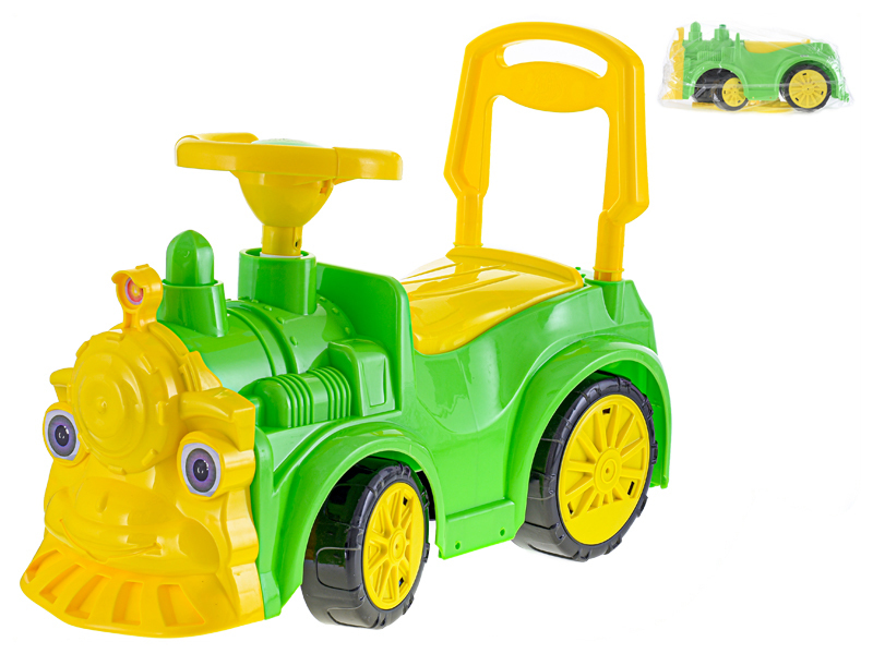 Lokomotiva odrážedlo 68x24x37cm zelená max. 30kg v sáčku