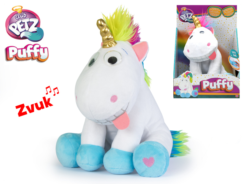 Jednorožec Puffy plyšový 26cm veselý smějící a pohybující se na baterie 18m+ v krabičce