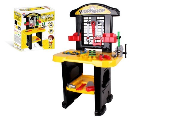 Velký dětský plastový ponk s nářadím a doplňky je velmi hezká hračka pro malé kutily. Hračka pro malé opraváře, kteří rádi pomáhají svým tatínkům při opravách v domácnosti. Tato velká sada obsahuje 9 ks nářadí a cca 61 ks doplňků. Sestavte si svůj vlastní ponk.