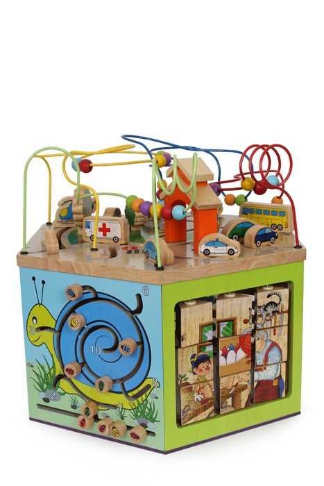 Zábava na 7 stranách školí motorické schopnosti, rozpoznání barev a tvarů. Stabilní masivní a vrstvené dřevo nabízí na šesti stranách a víku memory, motorické labyrinty a smyčky, puzzle a počitadlo. S robustními dřevěnými prvky si může hrát více dětí najednou celé hodiny!Německá firma Legler...