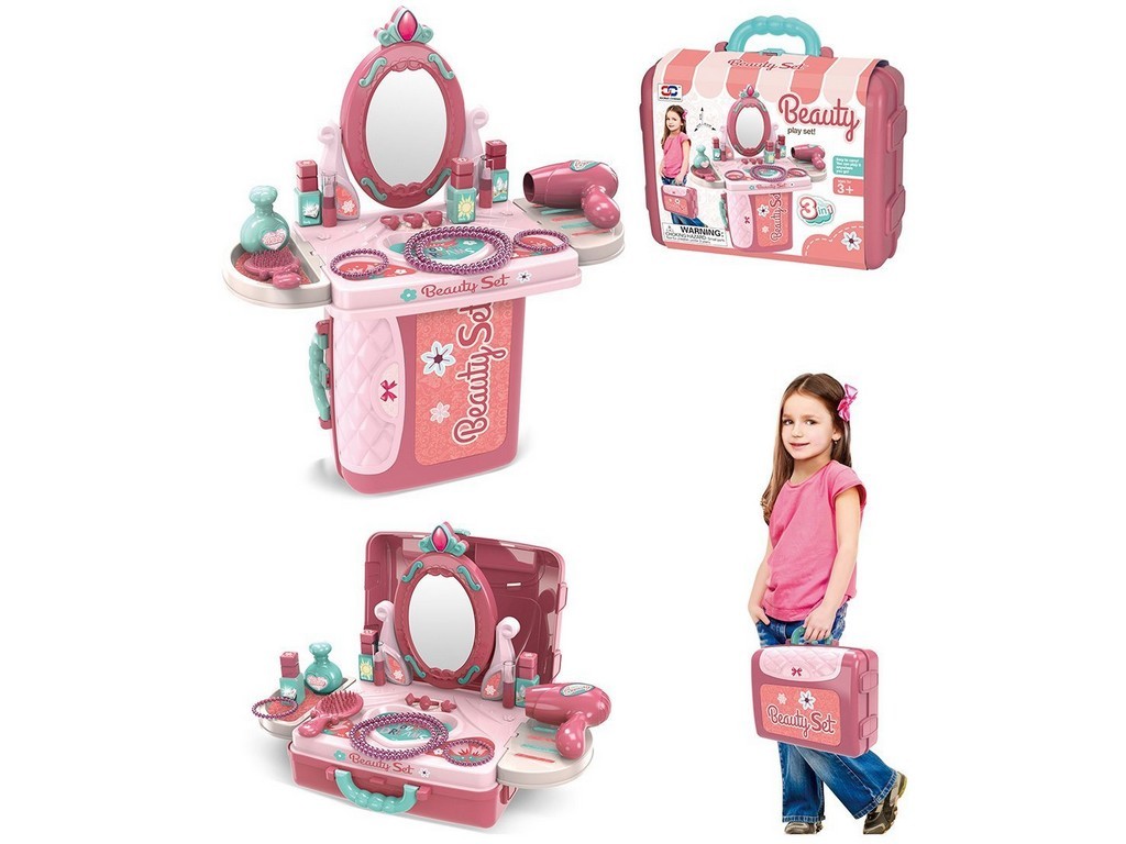 Kosmetický stolek se zrcadlem a spoustou nezbytného příslušenství pro malou slečnu. Kosmetický set je zakomponován do elegantního přenosného kufříku. Během chvilky je možné vše nutné poskládat do kufříku a připravit se na cestu k babičce nebo kamarádce. Rozměr složeného kufříku je 27,2 x 10,3 x... przeczytaj całość