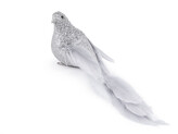 Ptáček s klipem k vánočnímu aranžování - 1 ks - stříbrná