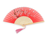 Vějíř textilní s metalickými detaily - 1 ks - 5 červená zlatá
