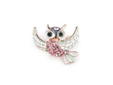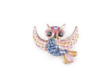 Brož s broušenými kamínky sova - 1 ks - 15 růžová sv.