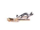 Brož kočka - 1 ks - 2 černá zlatá