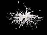 Péřová brož s perlami a broušenými korálky - 1 ks - 1 bílá