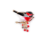 Brož s broušenými kamínky ptáček, papoušek - 1 ks - 4 červená broušené kamínky