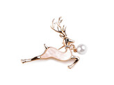 Brož s broušenými kamínky a perlou jelen - 1 ks - 2 zlatá