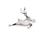 Brož s broušenými kamínky a perlou jelen - 1 ks - 1 stříbrná