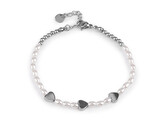 Náramek z nerezové oceli perlový - 1 ks - 3 bílá srdce