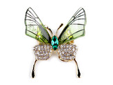 Brož s broušenými kamínky vážka, motýl - 1 ks - 6 zelená sv. motýl