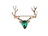 Vánoční brož s broušenými kamínky jelen - 1 ks - 2 zelená smaragdová