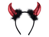 Čertovské rohy s peřím - 12 ks - černá červená