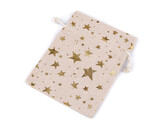 Dárkový pytlík hvězdy metalické 13x18 cm lněný - 10 ks - 2 režná zlatá