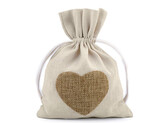 Dárkový pytlík 13x18 cm bavlněný, srdce - 10 ks - režná světlá