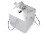 Dárková krabička se stuhou a provázkem - 12 ks - 1 stříbrná